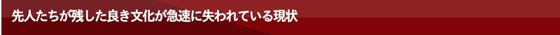 ◆先人たちが残した良き文化が急速に失われている現状